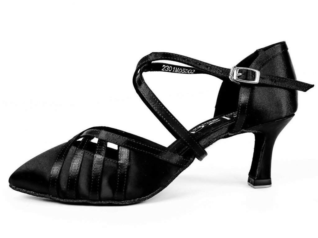 Dámske tanečné topánky Elza - 124 čierny satén 6,5 cm Flare