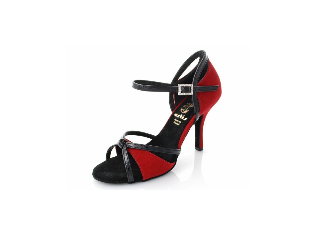 Dámske tanečné topánky Artis - DL 39 červený semiš/čierna lakovaná koža 8 cm Slim