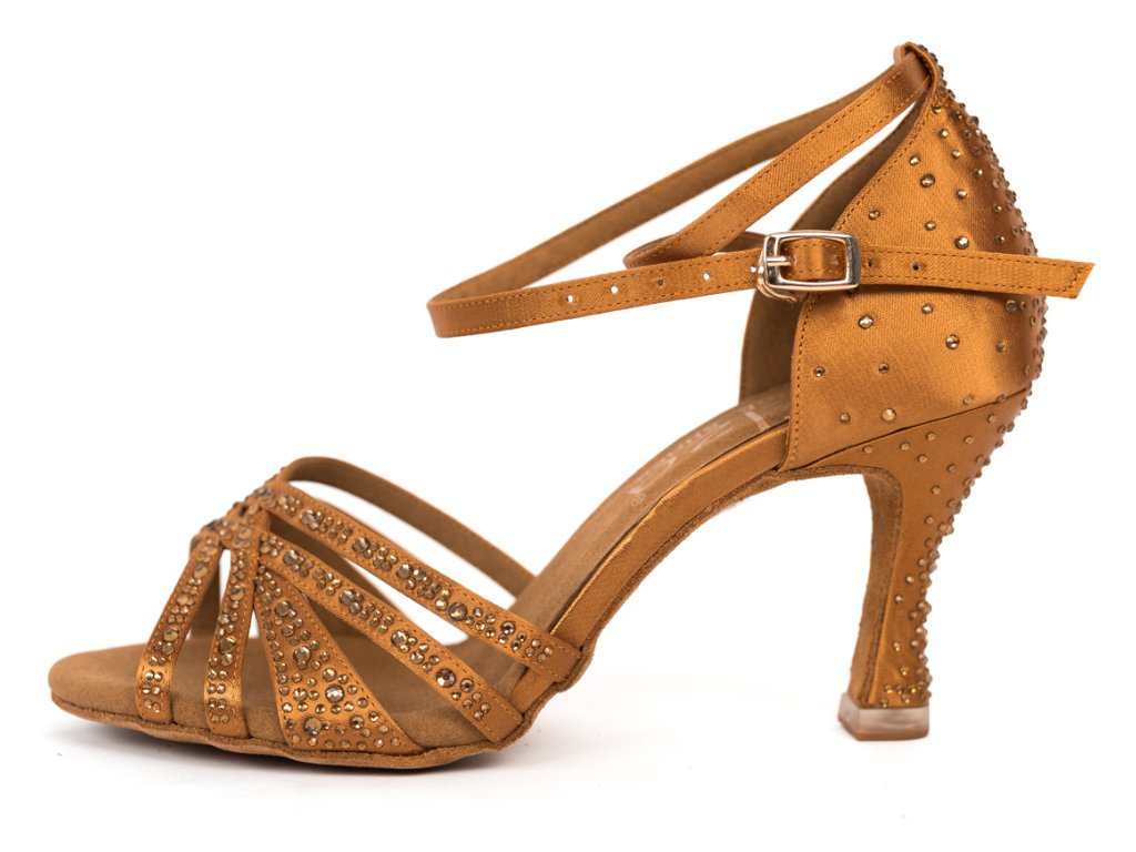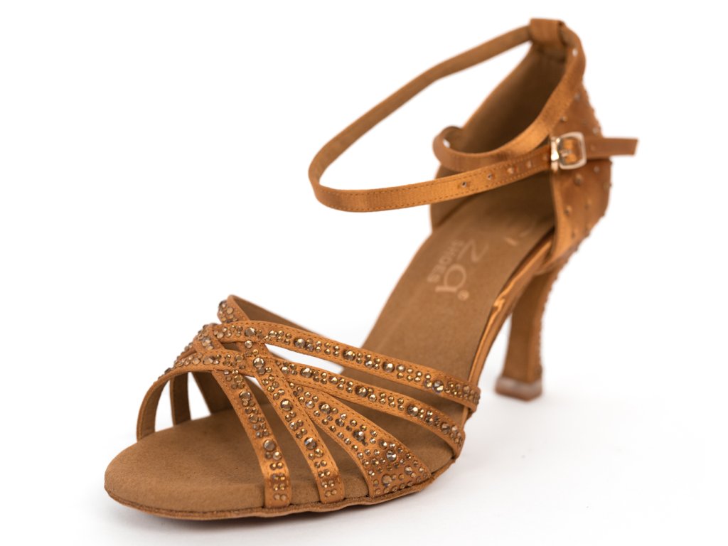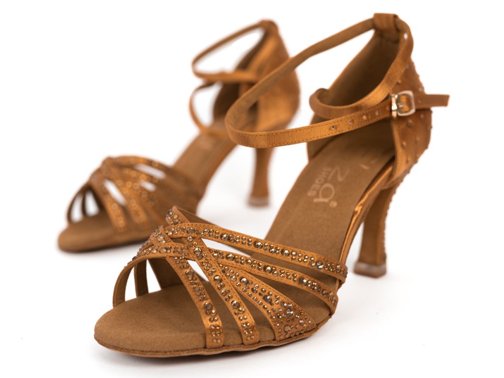 Predstavujeme Vám novú českú značku Elza, vytvorenú pre náročných tanečníkov. Tanečné topánky značky Elza sú vyrobené z exkluzívnych materiálov. Na výrobu topánok sme si vybrali vysoko lesklý a drahý tmavo telový satén (rovnaká firma vyrába satény pre Supadance). Tak exkluzívny a lesklý satén nenájdete na žiadnych iných tanečných topánkach na trhu, topánky v tomto prevedení vyzerajú naozaj famózne. Ako jediné tanečné topánky majú tiché podpätky z dvojitej vrstvy, ktoré sú skvelé vyvážené a perfektne stabilné. Vnútorná stielka je navyše zmäkčená a je z kvalitného vlhkosť absorbujúceho mikrovlákna.